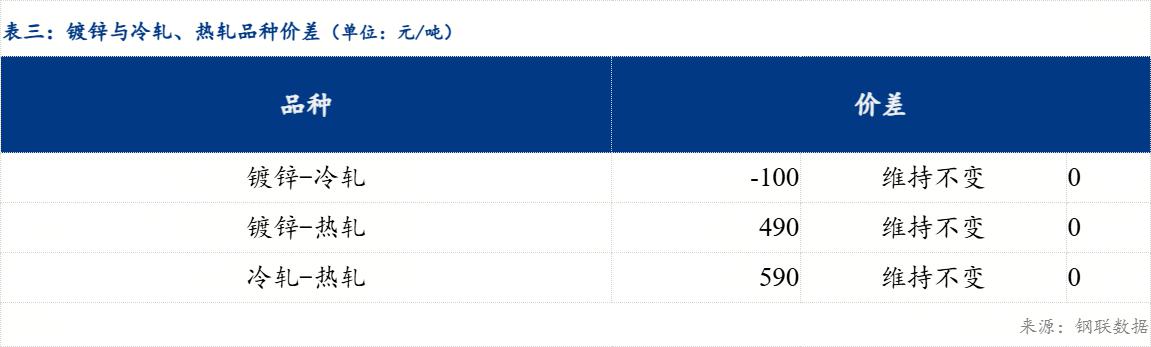 重庆、上海地区冷轧板卷区域价差维持不变;重庆、广州冷轧板卷区域价差维持不变。重庆、上海镀锌板卷区域价差维持不变;重庆、广州镀锌板卷区域价差维持不变。镀锌、冷轧品种价差维持不变;镀锌、热轧品种价差维持不变;冷轧、热轧品种价差维持不变。