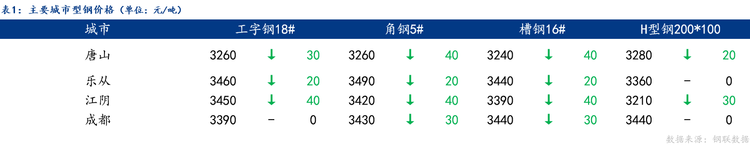 今日型钢价格稳中趋弱运行,下降幅度为20-40元/吨。
