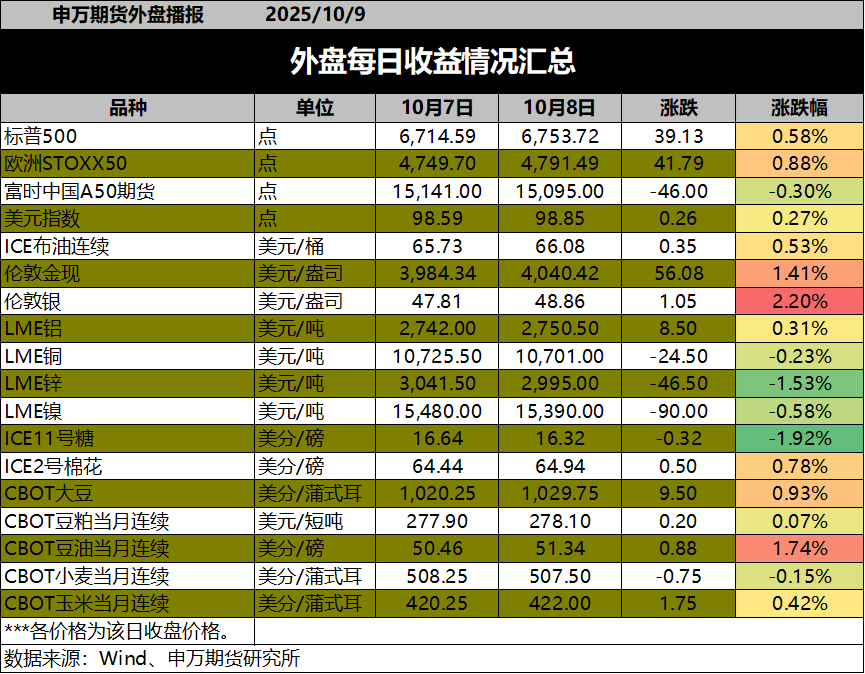 黄金:节日期间贵金属延续强势,国际金价站上4000美元/盎司,白银同样一路高歌。美联储谨慎表态、美元走强、远好于预期的9月非农等传统利空因素未对黄金形成打压,美国政府“停摆”还在发酵。体现了对美国财政赤字、债务持续膨胀的担忧,以中国为代表的央行持续增持黄金,对当前金融体系不信任的背景下重新成为终极安全资产的长期叙事主导愈发明显,价格一路高歌和情绪发酵相互增强。对白银征收关税担忧使得现货趋紧,令白银双重收益。尽管目前来看黄金的长期多头叙事明确,但短期还是要注意情绪的过度表达。