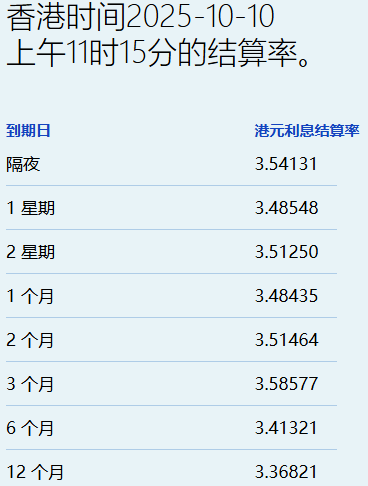 10月10日,港元拆息个别发展,而与楼按相关的一个月拆息报3.48435%,跌3.601基点,连跌三日且见三周低位;反映银行资金成本的三个月拆息报3.58577%,跌0.733基点。