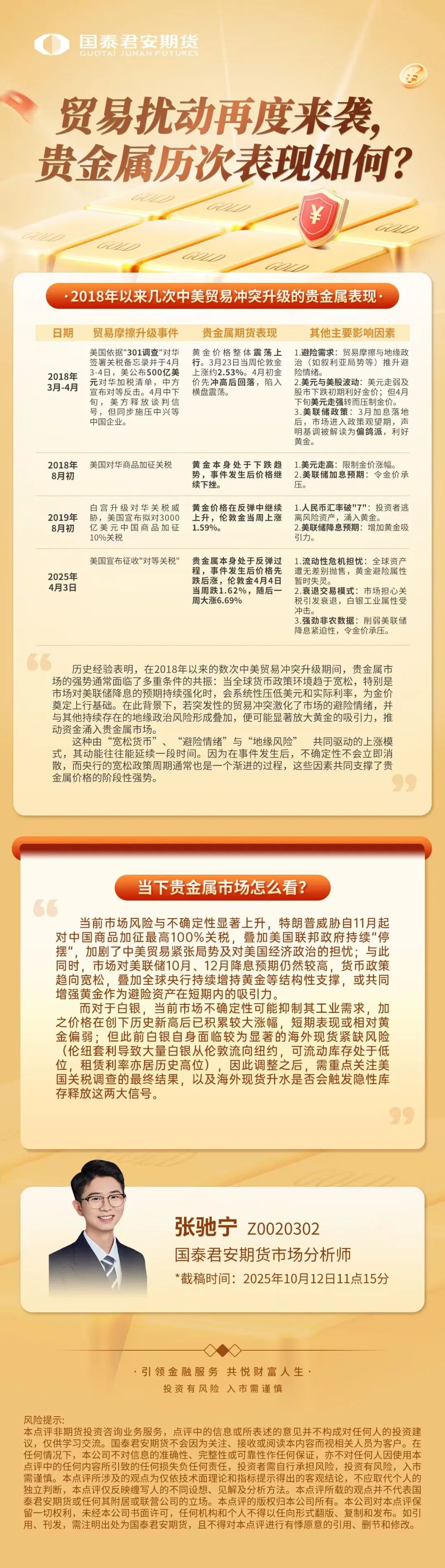 贸易扰动再度来袭,贵金属历次表现如何?