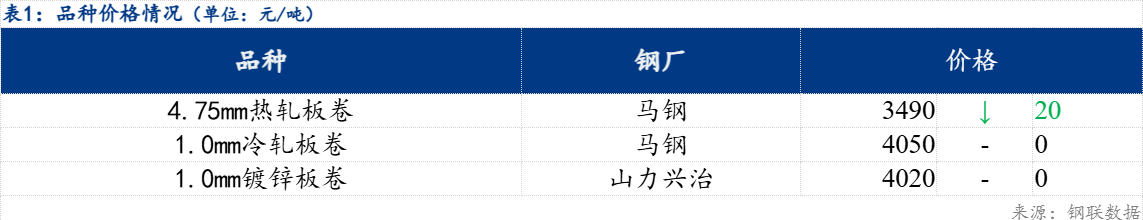 今日合肥-上海1.0mm马钢价差为130元/吨,较上一交易日扩大10元/吨;合肥-无锡1.0mm马钢价差为130元/吨,较上一交易日持平 ;品种价差方面:冷热价差540元/吨,较上一交易日扩大10元/吨 。
