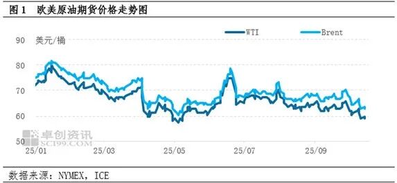 卓创资讯数据显示,2025年三季度WTI原油均价64.97美元/桶,环比上涨2.02%,同比下跌13.69%,其中高点为7月30日的70美元/桶,低点为9月5日的61.87美元/桶;布伦特原油均价68.17美元/桶,环比上涨2.18%,同比下跌13.40%,其中,高点为7月30日的73.24美元/桶,低点为9月5日的65.50美元/桶。影响三季度原油市场的驱动因素来看,利空主要有宏观压力持续与产业过剩预期,利好则集中在国际贸易争端降级、地缘局势频繁扰动以及美国石油去库周期。