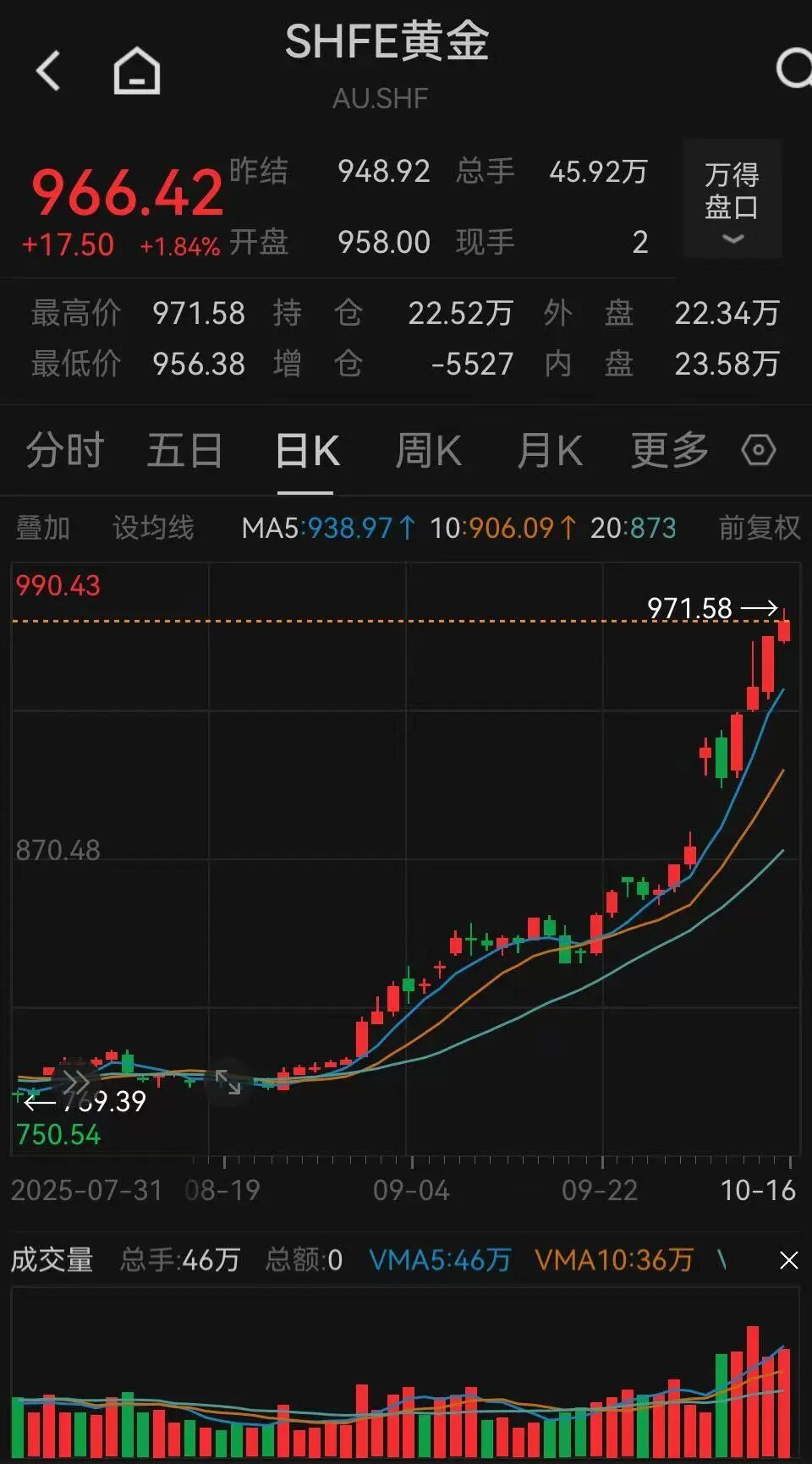 16日触及971.58元/克,国庆假期后不断刷新历史新高;沪银主力合约触及12296元/千克,9月以来累计涨幅超过30%;上海黄金交易所黄金T+D、白银T+D年初至今涨幅均在60%左右。