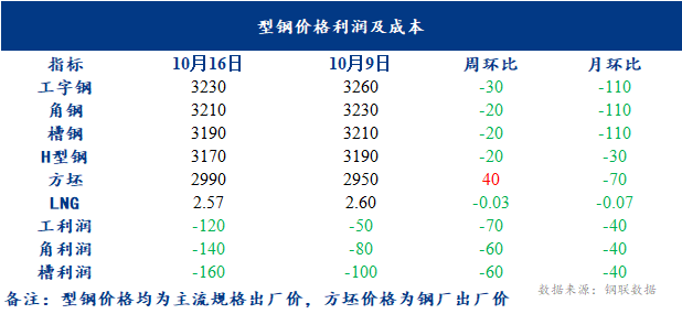 唐山型钢价格趋弱运行,工字钢、角钢、槽钢价格较上周下跌20-30元/吨,钢坯价格较上周趋强,LNG价格持较上周小幅下降,调坯轧钢厂理论利润倒挂。