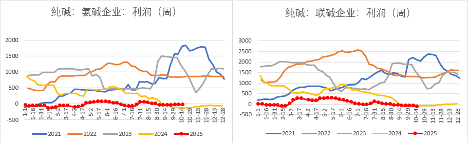 从利润来看,目前纯碱除了天然碱保持较高利润外,联碱法和氨碱法基本都出于盈亏平衡附近,整体上纯碱利润随着价格走低在持续压缩,近期随着北方气温提前降温,煤炭价格走强,带动纯碱成本上涨,部分纯碱厂家压力在增加。