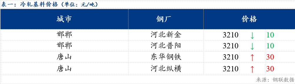 今日北方市场冷轧基料3.0*1010*CSPHC河北普阳价格为3210元/吨,较上一期价格下跌10元/吨,河北纵横价格为3210元/吨,较上一期价格上涨30元/吨。镀锌方面,今日北方市场价格持稳运行;轧硬方面,当前主流报价3380-3510元/吨。市场方面,贸易商暗降出货情况居多,大部分民营资源镀锌成交价要低于市场价格100元/吨,操作上仍以出货保成交为主,北方大户日成交400吨。