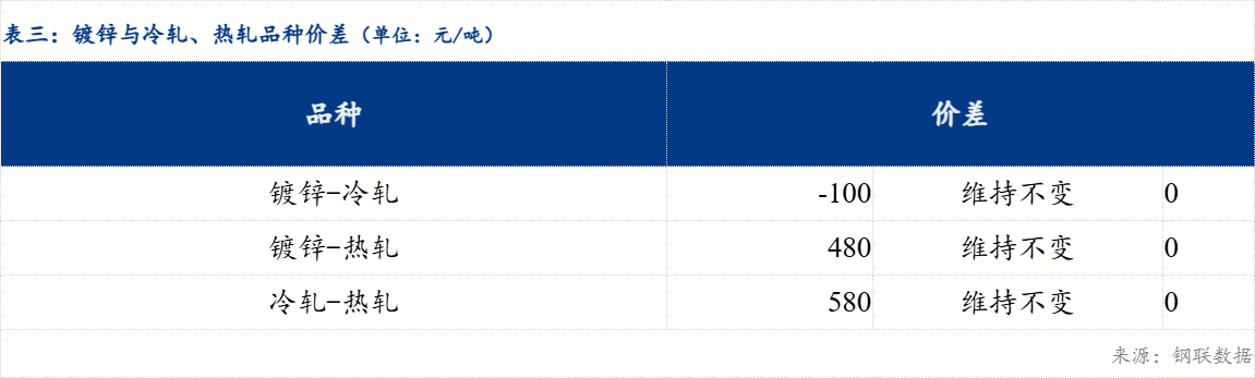 重庆、上海地区冷轧板卷区域价差维持不变;重庆、广州冷轧板卷区域价差维持不变。重庆、上海镀锌板卷区域价差维持不变;重庆、广州镀锌板卷区域价差扩大10元/吨。镀锌、冷轧品种价差维持不变;镀锌、热轧品种价差维持不变;冷轧、热轧品种价差维持不变。