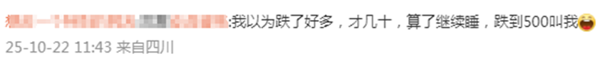 有网友心态平和:“我以为跌了好多,才几十元,算了继续睡,跌到500元/克叫我。”
