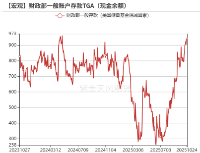 上周ONRRP的使用量为100.6亿美元,较前值回升60.5亿元,与之相对应的是TGA余额的攀升。