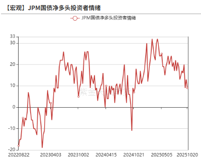 截至10.20当周,JPM国债净多头投资者情绪9,较前一周回落。
