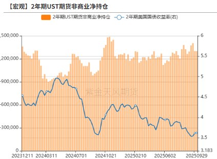 截至9.23的数据,长短端美债利率持仓分化,2年期UST期货非商业净持仓空头减少103272手至1,300,198手;10年期UST期货非商业净持仓空头增加24817手至844116手。