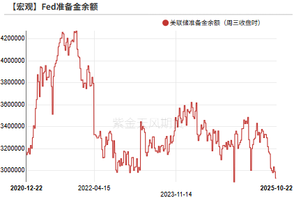 上周三美联储准备金余额为2.93万亿美元,较前一周回升580亿。