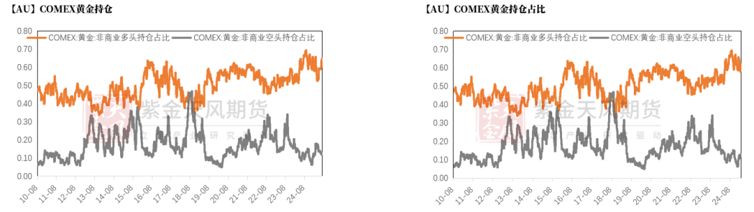 持仓占比方面,非商业多头持仓减少至63%附近,非商业空头持仓减少到12%附近。