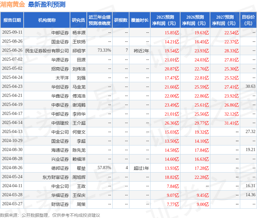 股份有限公司邱祖学,王作燊近期对湖南黄金进行研究并发布了研究报告《2025年三季报点评:业绩略低于预期,出口限制导致锑销售受限》,给予湖南黄金买入评级。