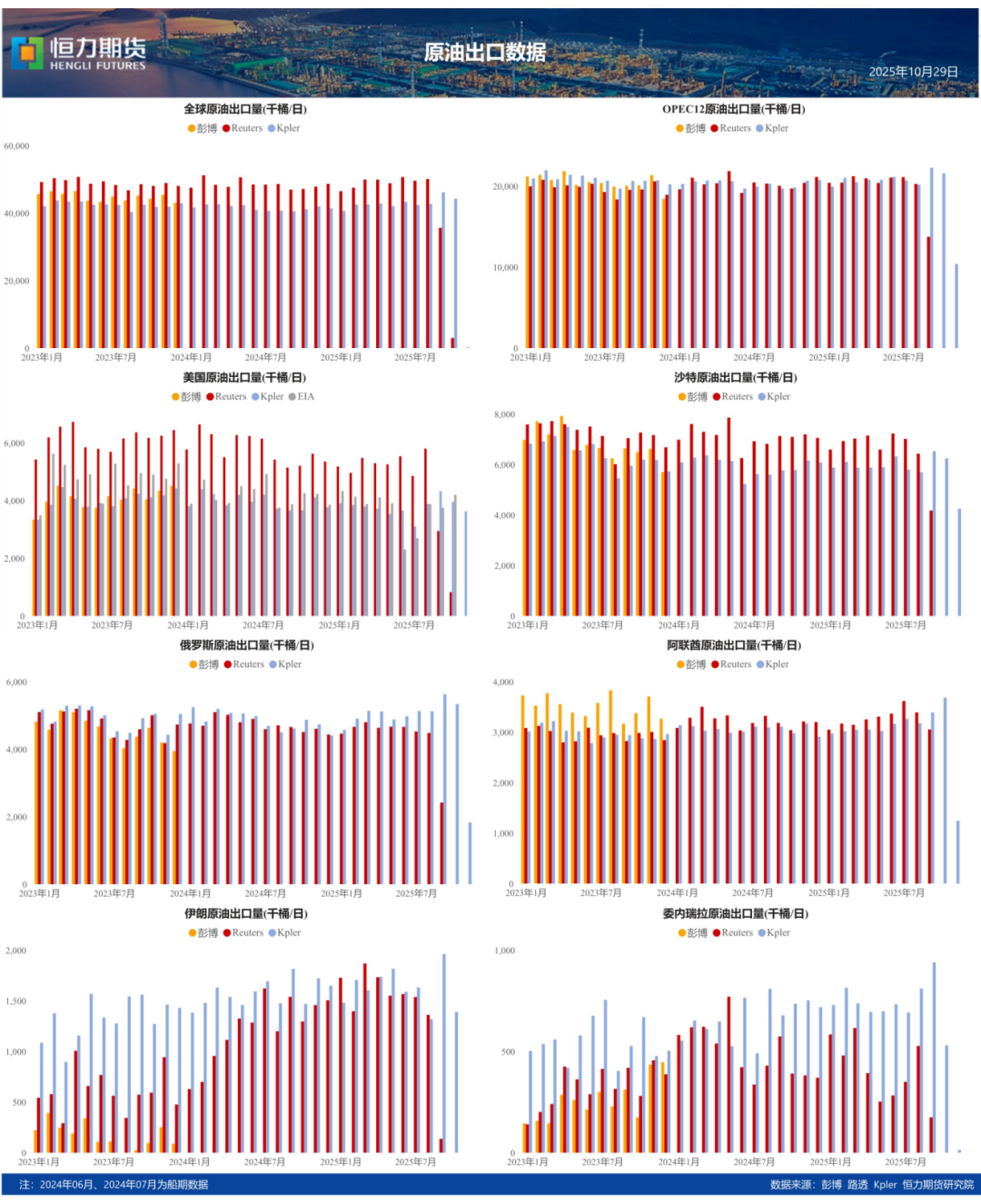 9月伊朗出口量196.2万桶/日,委内出口量94.0万桶/日,环比大幅上涨