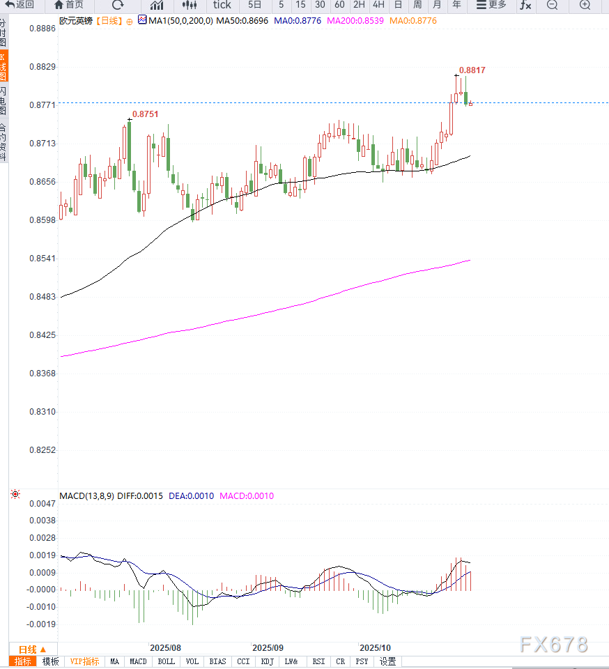 从短期来看,欧元兑英镑的上行主要受英国财政不确定性驱动,而非欧元区内部基本面改善。若英国秋季预算如市场担忧般偏紧,英镑或继续承压。然而,法国政治风险可能在中期对欧元形成反制压力,使得EUR/GBP走势保持震荡格局。