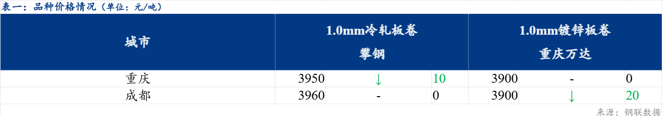 综合来看,市场成交不温不火,贸易商观望心态较浓。虽然积极促进成交,但需求表现疲软,成交小幅缩量。预计明日西南地区冷轧及镀锌板卷价格窄幅调整运行。