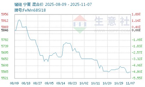 本周硅锰整体市场偏弱运行,主流钢厂并未开启招标,南方招标钢厂定价继续下跌,工厂持续倒挂,南方主产区开工率开始下降,其中云南地区减量最为明显,内蒙工厂开工亦存在下跌空间。成本端锰矿仍相对坚挺,化工焦价格暂无波动。根据生意社商品行情分析系统的数据显示,本周末硅锰在宁夏地区(规格为FeMN68Si18)的市场报价5500-5600元/吨左右,市场均价5564.00元/吨,与周初相比稍下跌0.57%。