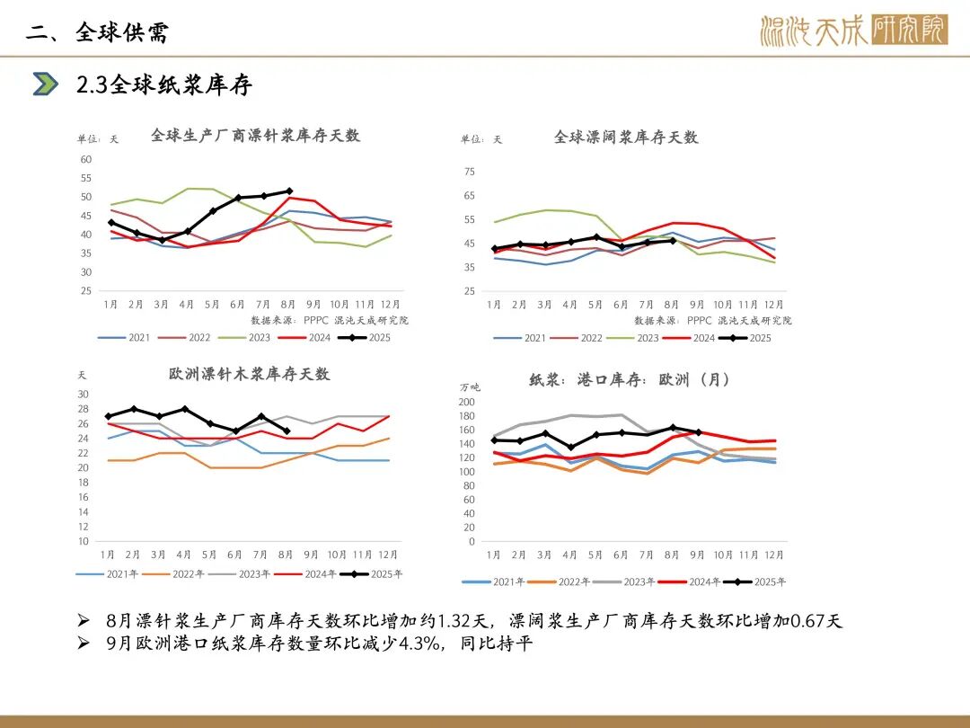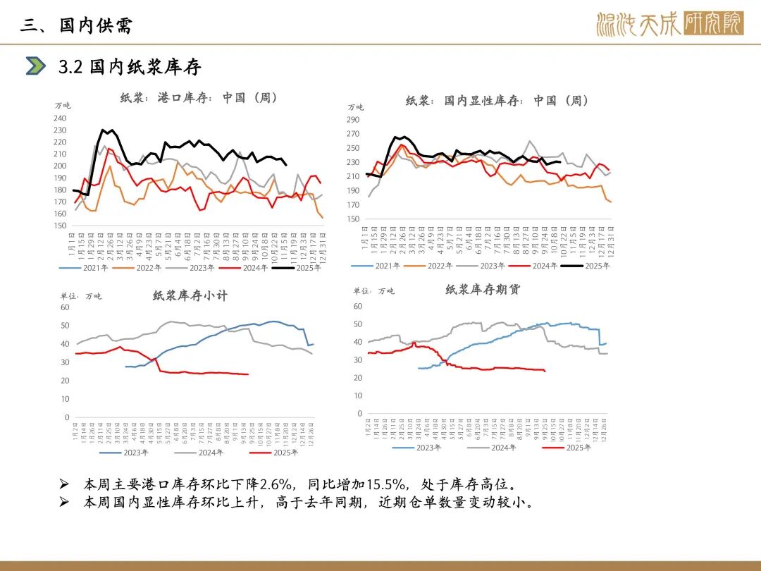 近一周,SP2601合约震荡上涨;Arauco10月报价,针叶浆银星680美元/吨,较上轮下降20美元/吨;因木片成本上涨,亚太森博宣布阔叶浆接单价格上调150元/吨;供应端,国内市场,重庆市生态环境局批准重庆理文造纸