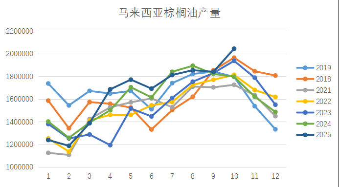 从产量来看,棕榈油产量增长至204万吨,创下2018年10月以来的最高水平。棕榈油产量大幅上涨