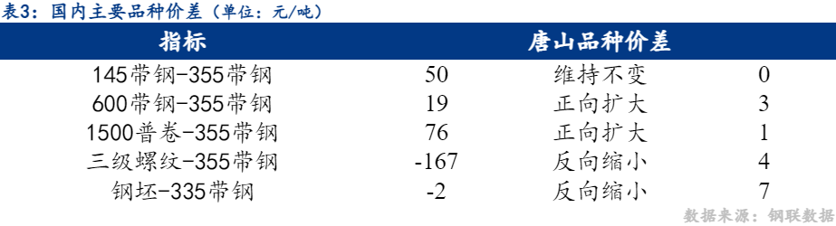 355mm带钢与钢坯市场价格价差反向缩小7元/吨,螺带差反向缩小4元/吨。