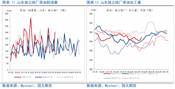 最新数据显示,截至11月3日当周,山东独立炼厂原油到港量203.2万吨,环比下跌27.6万吨,跌幅为11.96%。相比之下,去年同期,山东独立炼厂原油到港量为154.3万吨,环比下跌7.2万吨,跌幅为4.46%;到港原油以中质原油为主,其中俄罗斯原油到港79.4万吨,但无新的稀释沥青到港。
