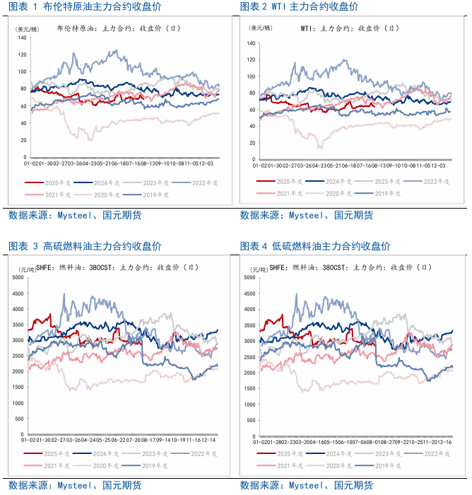 2025年10月份,原油燃料油价格走势呈现先跌后涨的V形反转态势,10月前半月下跌的最低点已经接近了4月份的下跌最低点,主要原因在于OPEC+10月5日召开会议再度增产以及特朗普频繁调整的关税政策,10月后半月油价迅速反弹主要得益于关税政策的缓和以及OPEC+宣布可能于2026年起暂停增产计划。