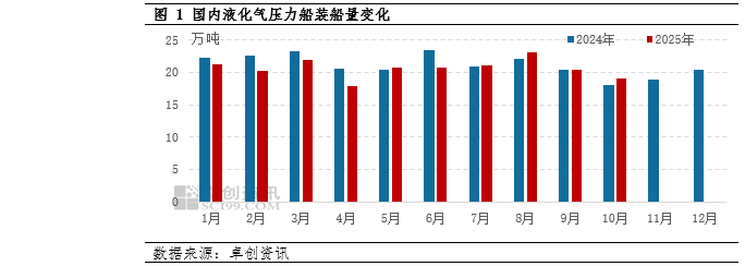 10月份国内液化气压力船装船量延续下降,因卖方供应量不大装船必要性下降,未来两月预计装船量维持偏少状态,供需矛盾并不明显,装船分流量偏少。