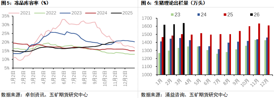 低价和低温能够刺激消费不假,但从季节性同比偏低的鲜销率水平,以及涨价后明显回落的屠宰量来看(图1),消费增量或整体有限,且持续性不佳,是本轮涨价的次要因素,冻品入库和二育才是这波反弹最主要的助推力量,这表明今年供应仍未跳脱出熊市下的模式,即供应端存在着明显的后置,主要表现为冻品库存和二育活体的向后堆积(图4、图5)。