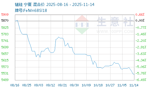 本周硅锰市场震荡运行,一方面成本支撑相对偏强,产区部分硅锰企业开炉下降或有检修和转产情况,价格底部行情较为稳挺;另一方面,下游钢市行情不振,需求客户对原料采购或难改压价心理。根据生意社商品行情分析系统的数据显示,本周末硅锰在宁夏地区(规格为FeMN68Si18)的市场报价5450-5550元/吨左右,市场均价5524.00元/吨,与周初相比稍下跌0.83%。