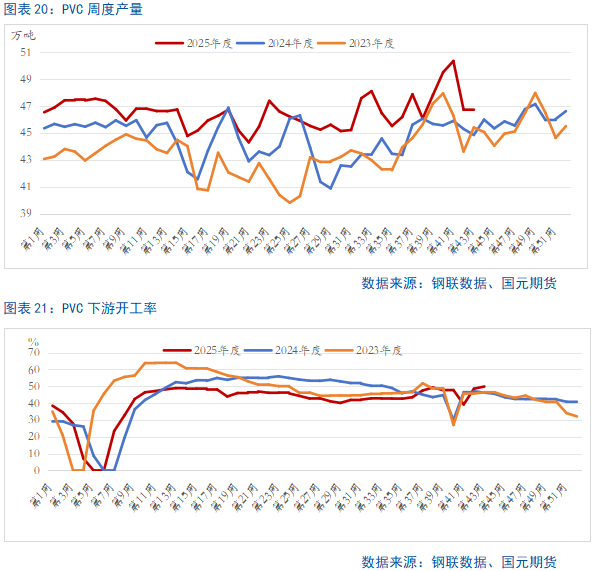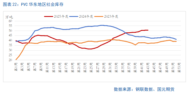 10月中下旬以来,随着冷空气活动加剧,南方高温退散,北方陆续进入供暖季,煤炭消费旺季已定。尽管当前电厂库存有所回升,但整体仍低于绝对安全水平,冬季补库需求依然存在。综合来看,成本端对PVC价格支撑强劲。