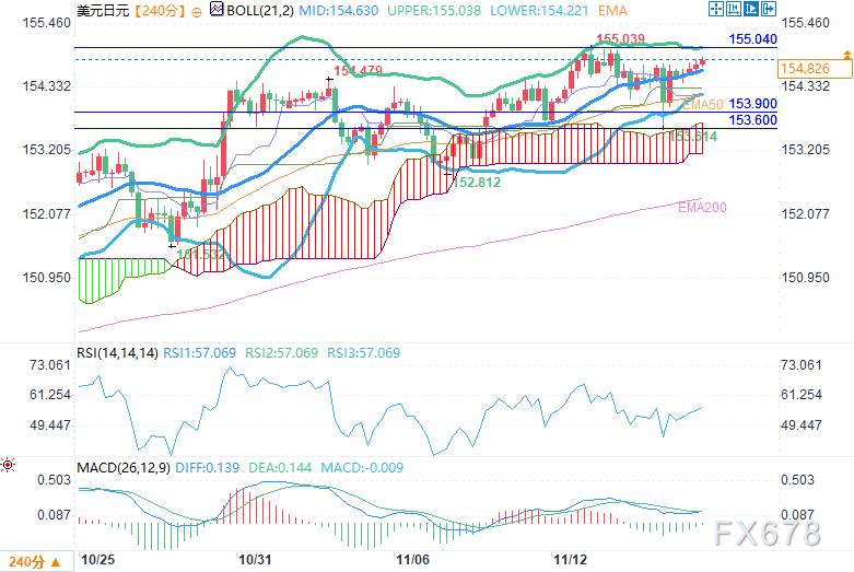 汇通财经APP讯——周一(11月17日)欧盘时段,美元/日元汇率升至154.80附近,尽管日本公布的经济数据好于预期,但该汇率仍接近2月份高点。