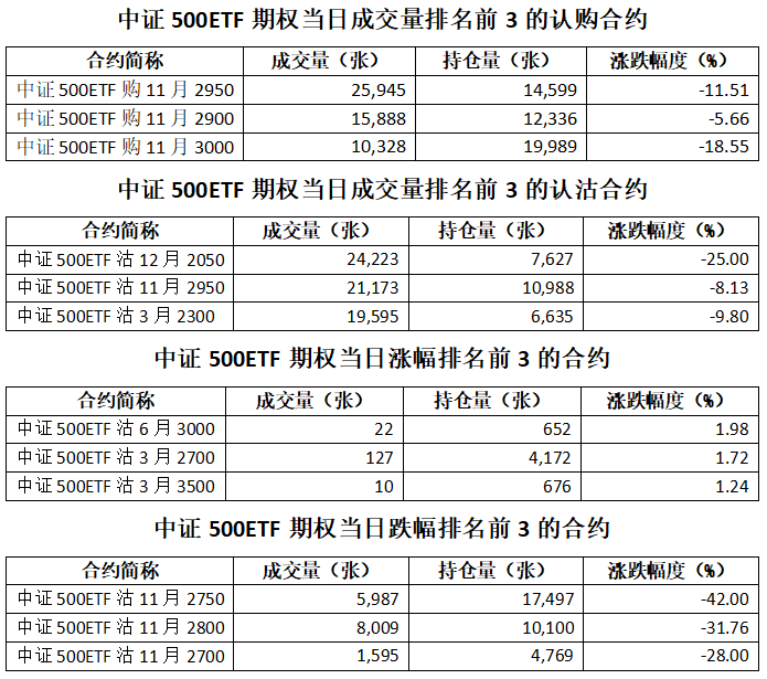 中证500ETF期权总成交面额69.77亿元,减少11.20%,期现成交比为0.02,权利金成交额0.91亿元;期权总成交量249,837张,减少10.20%,其中认购期权成交量99,394张,认沽期权成交量150,443张,认沽认购成交比率为1.51(上一交易日认沽认购成交比率为1.80)。