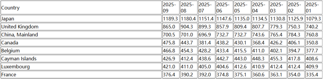 具体来看,美债第一大持有国日本持有规模达到1.189万亿美元,9月份持仓量增加89亿美元、8月增加290亿美元。