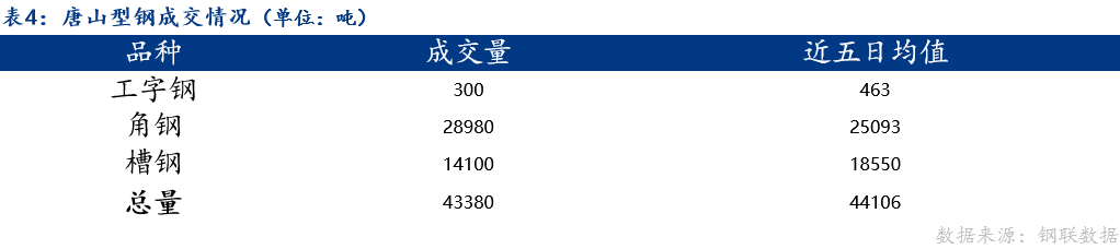 2、成交量为20家型钢厂当日成交,其中包括工字钢6家、角钢7家、槽钢7家。