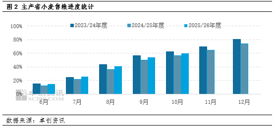 再次,新季小麦播种时间后延。受9-10月份持续阴雨天气影响,玉米收割时间后延,且土壤湿度大,也在一定程度上影响小麦的播种进度,卓创资讯调研的部分主产地市小麦播种时间较常期晚10-20天不等,个别地片后延时间更长,叠加近年来极端天气增加,使得业者对于新年度小麦的产量存一定担忧情绪,也加重了持粮主体的惜售心理。