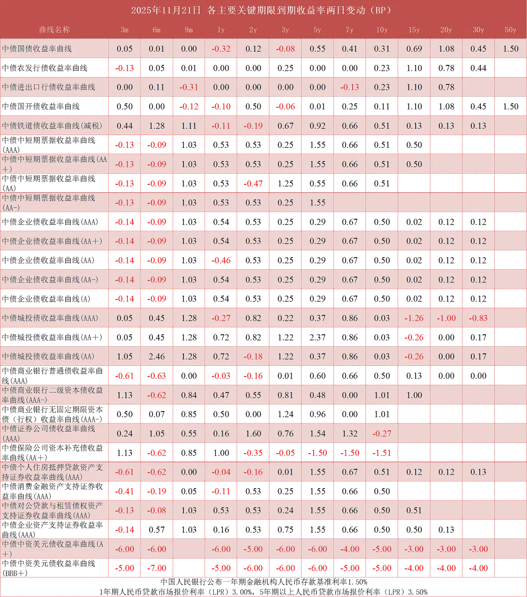 具体波动情况请见《各主要关键期限到期收益率两日变动》。